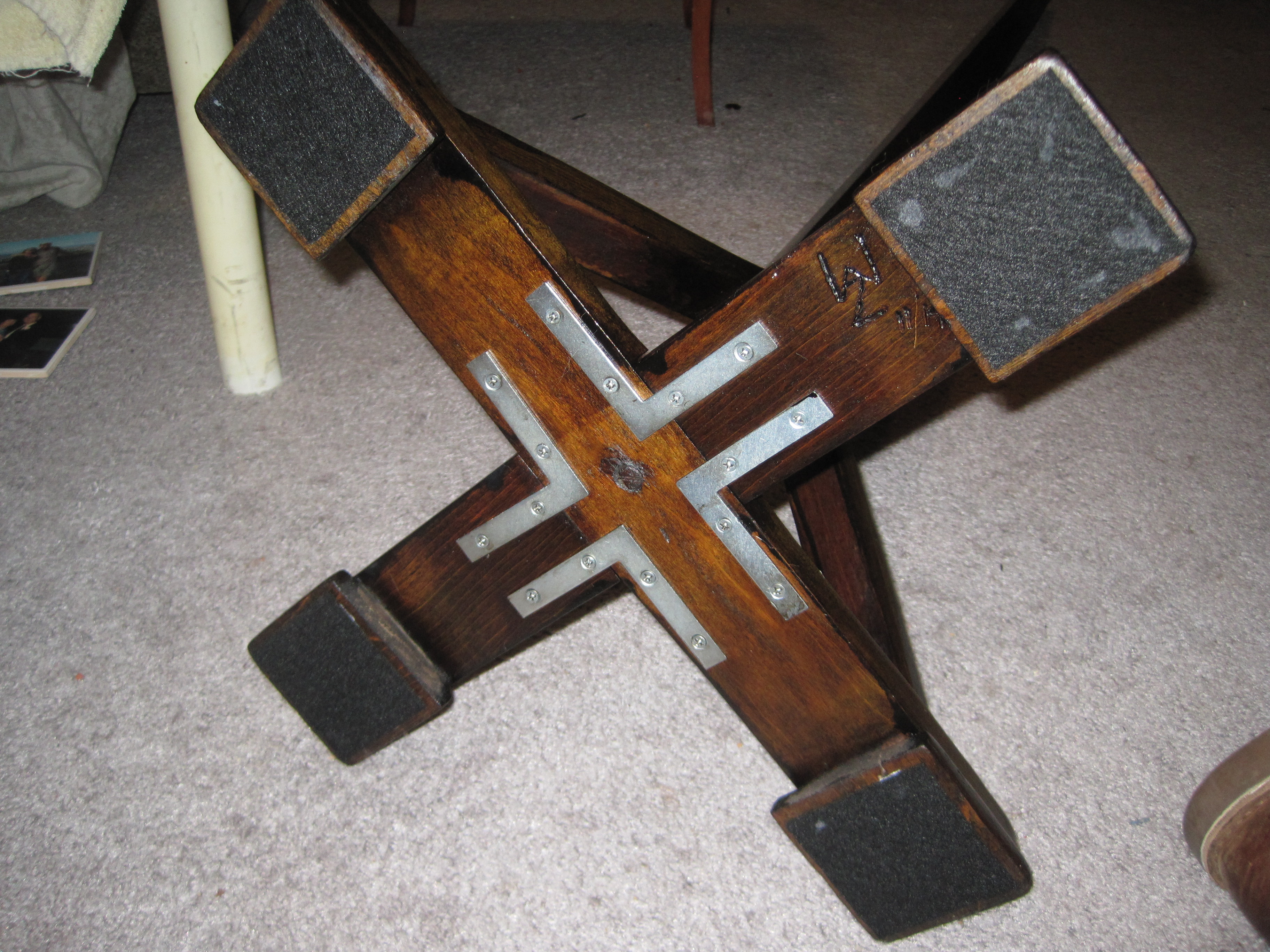 Did I mention the coat rack was wobbly? Well, it was. As in “weebles wobble” wobbly. But as always, Dan had a solution. He drilled braces into the bottom of the coat rack – problem solved.