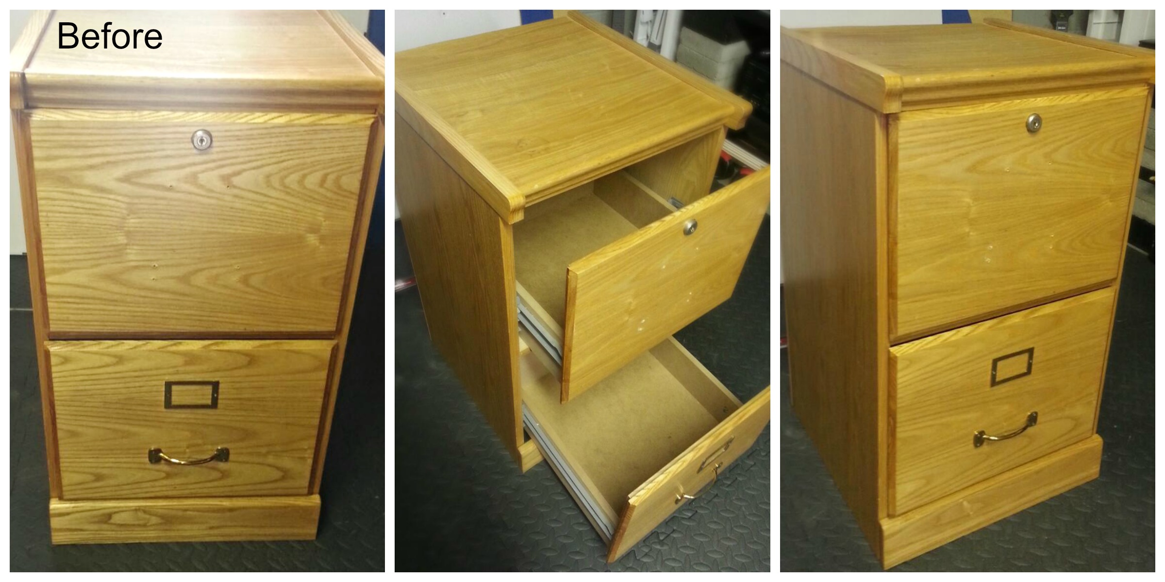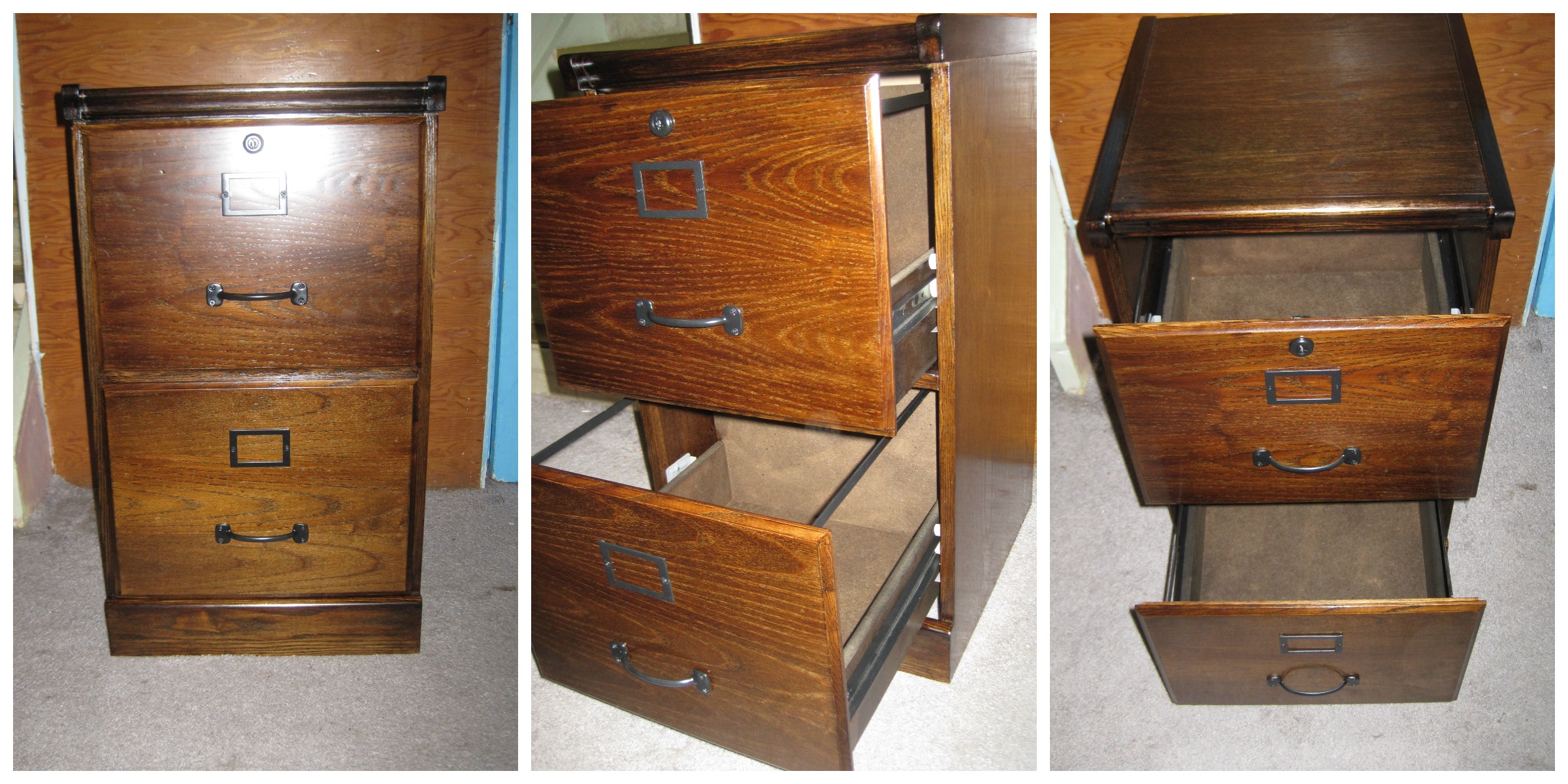 Little did I know that what would intrigue Dan the most was a filing cabinet that wasn’t even completely wood. At the same time, I shouldn’t be surprised. As an accountant, he likes to keep track of everything, paperwork, receipts, etc. A good habit to have, and one that I tend to slack at. He currently has a little plastic filing cabinet that he keeps under his desk at home with all his bills and receipts organized – so a free-standing wood filing cabinet with his own personal touch would be perfect for his future office. Yes – the office in our dream home that we’re still dreaming about. At this rate, we’re going to have our rooms fully furnished before we even have a house.