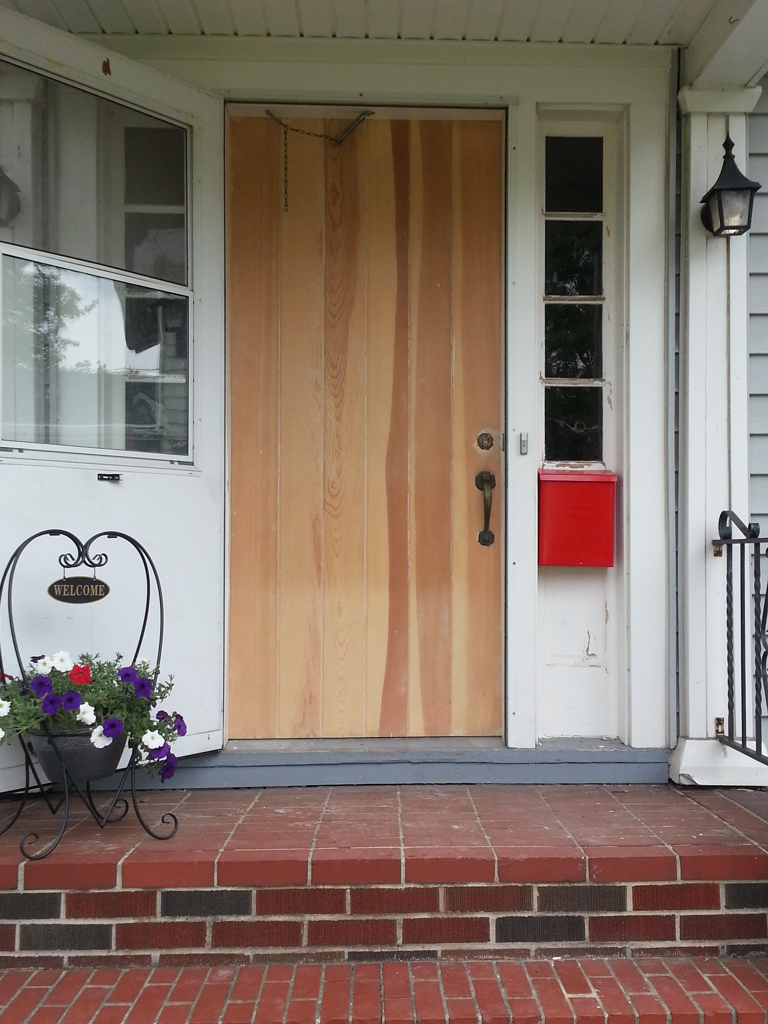 Our front entry door is solid wood and original to the house. But its been neglected through the years and just covered in layers and layers of paint. All it took was lot of paint stripper and a little sanding, and the door was back to its original glory. We’ll eventually stain it darker to match the rest of the woodwork, but for now, we’ll embrace its natural look.