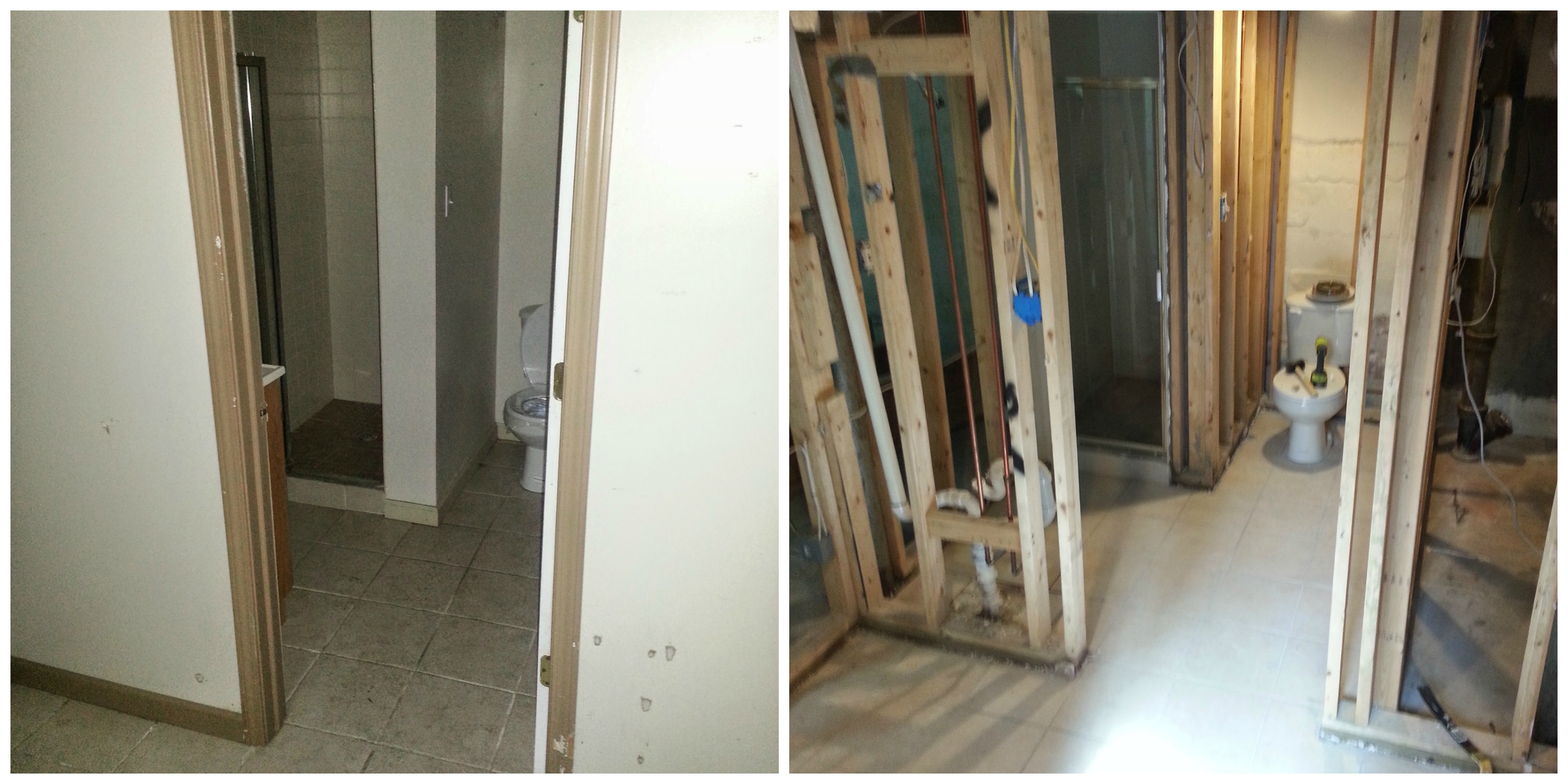 Basement bathroom, before and after demo
