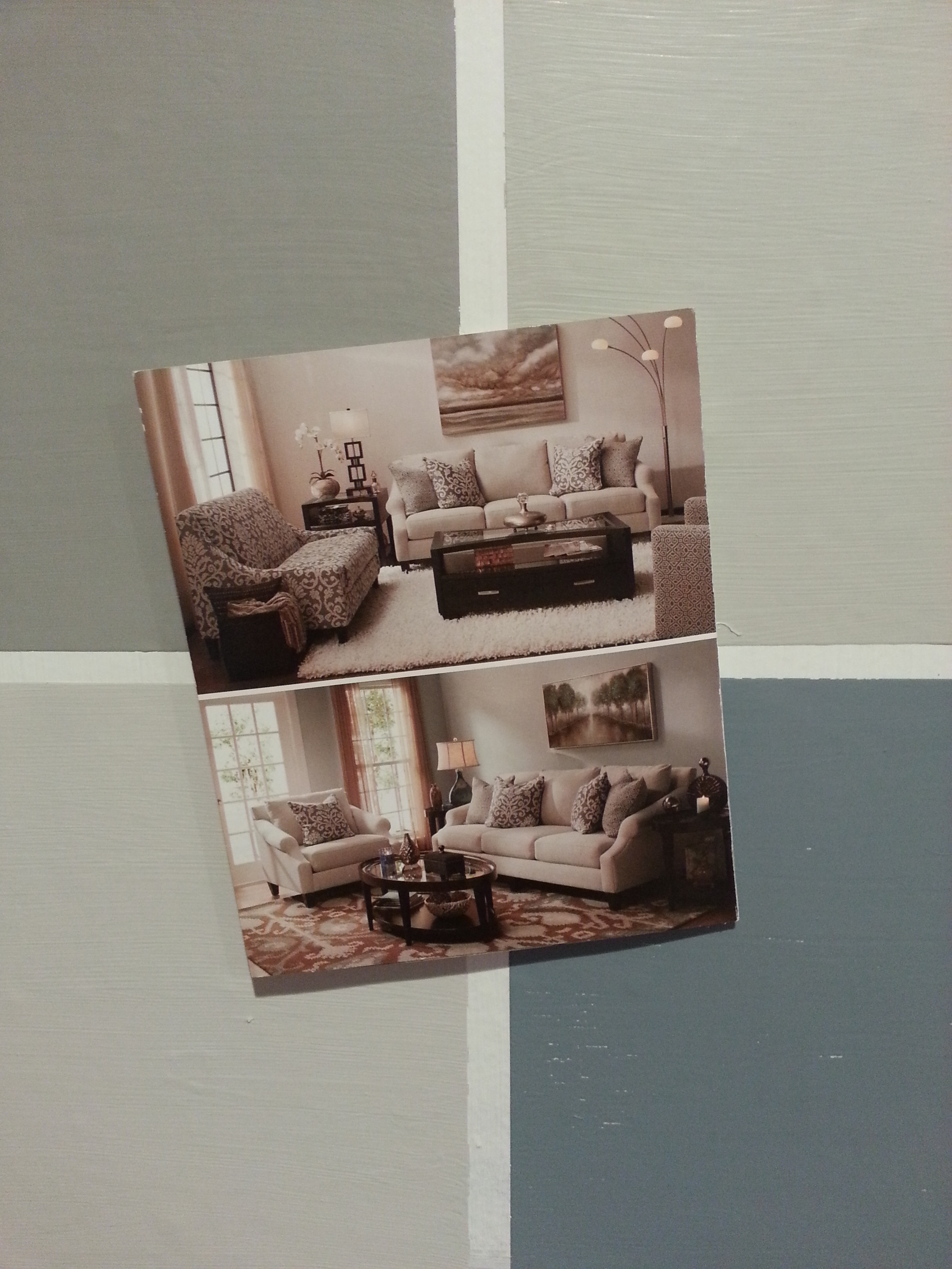 And now, for a very small hint of the fun part. Amidst all the craziness, we have to keep in mind that we’ll eventually get to the point where we can put a new face on the inside of the house. And that means – paint! Twelve paint samples later, and we finally came up with our color scheme.