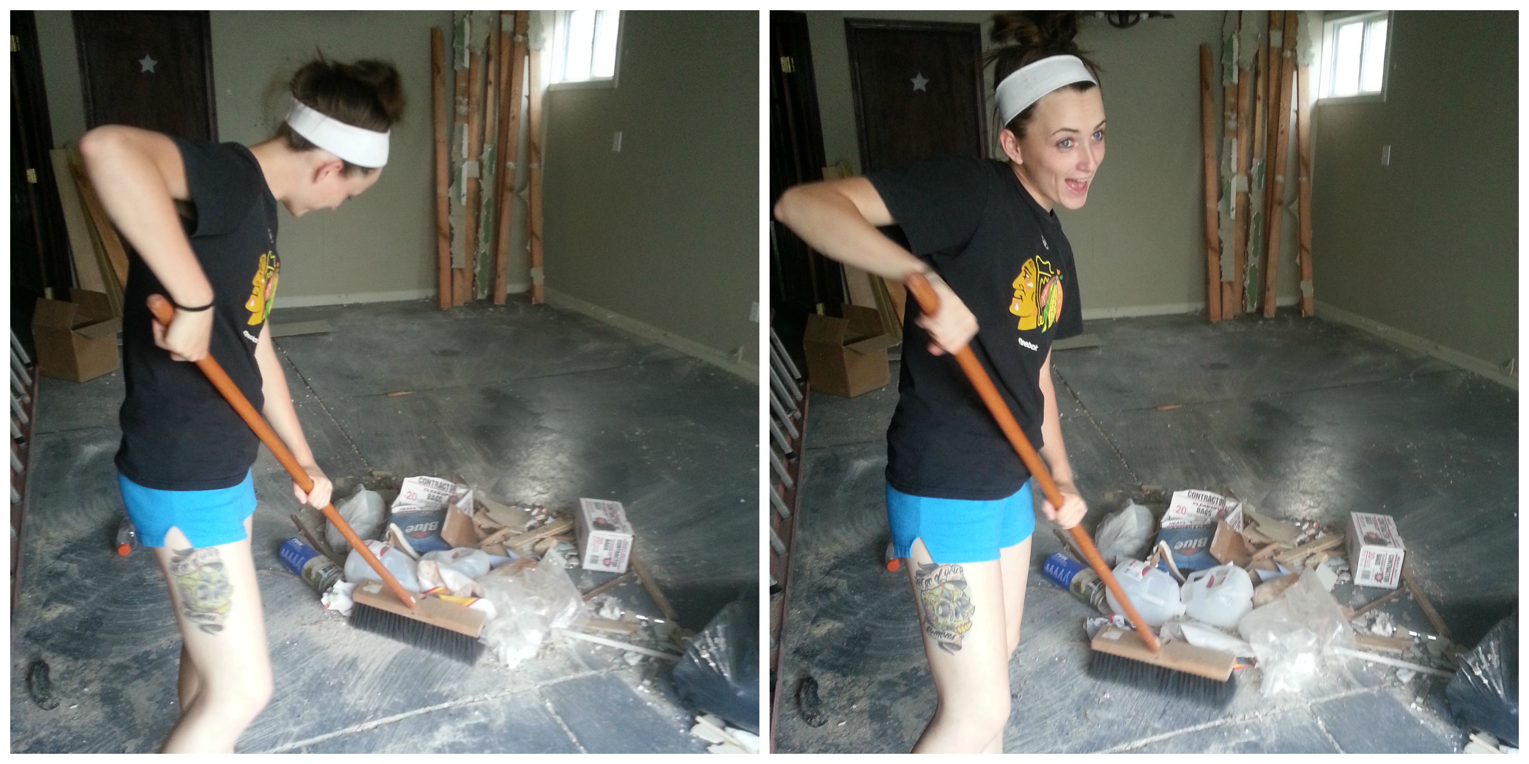 The moment I’ve been waiting for – endlessly scraping paint finally ended. And while I said that the dirty prep work was coming to a close, its not quite finished yet. Mudding and sanding walls smooth apparently creates a big mess. So much so that you can be standing 5 feet away from someone and not be able to see them through the big white cloud of dust.