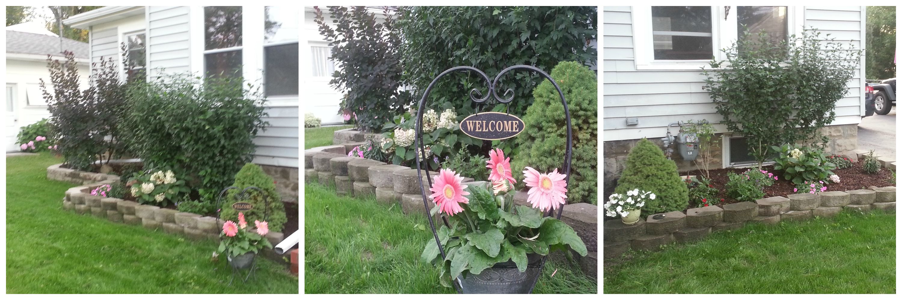 overgrown front landscaping we’ve been working on for a few weeks now? Well after leveling out the pain-in-the-butt garden bricks, Dan’s mom completed her masterpiece. And it looks great.