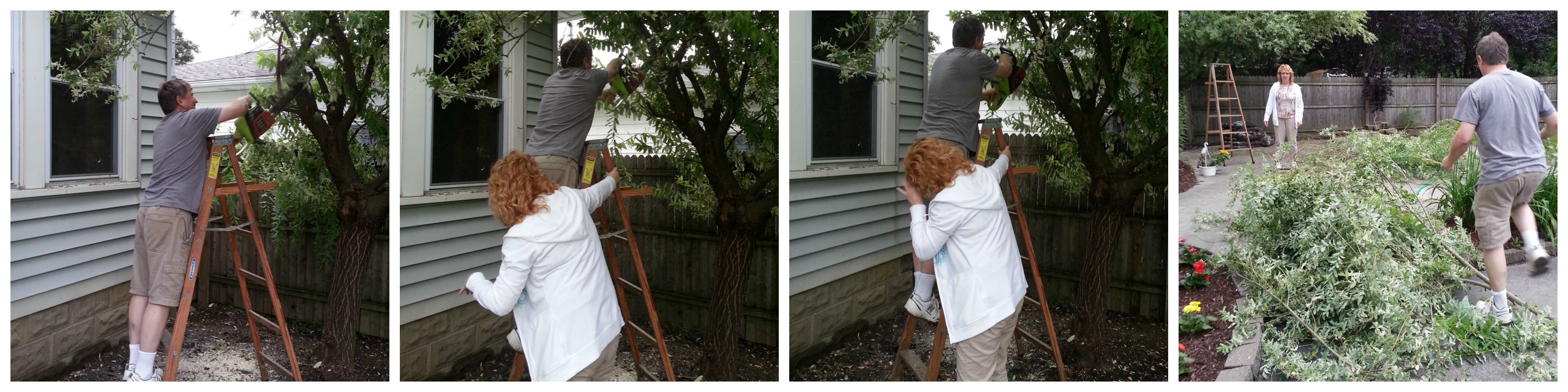 Little by little, we’ve been working on the front and back landscaping. And now, it all comes together. After receiving an estimate of $300 to trim back a small tree in the backyard, my mom and dad decided to take it into their own hands and do the work for us. It took them all of 20 minutes to get the tree looking like new.