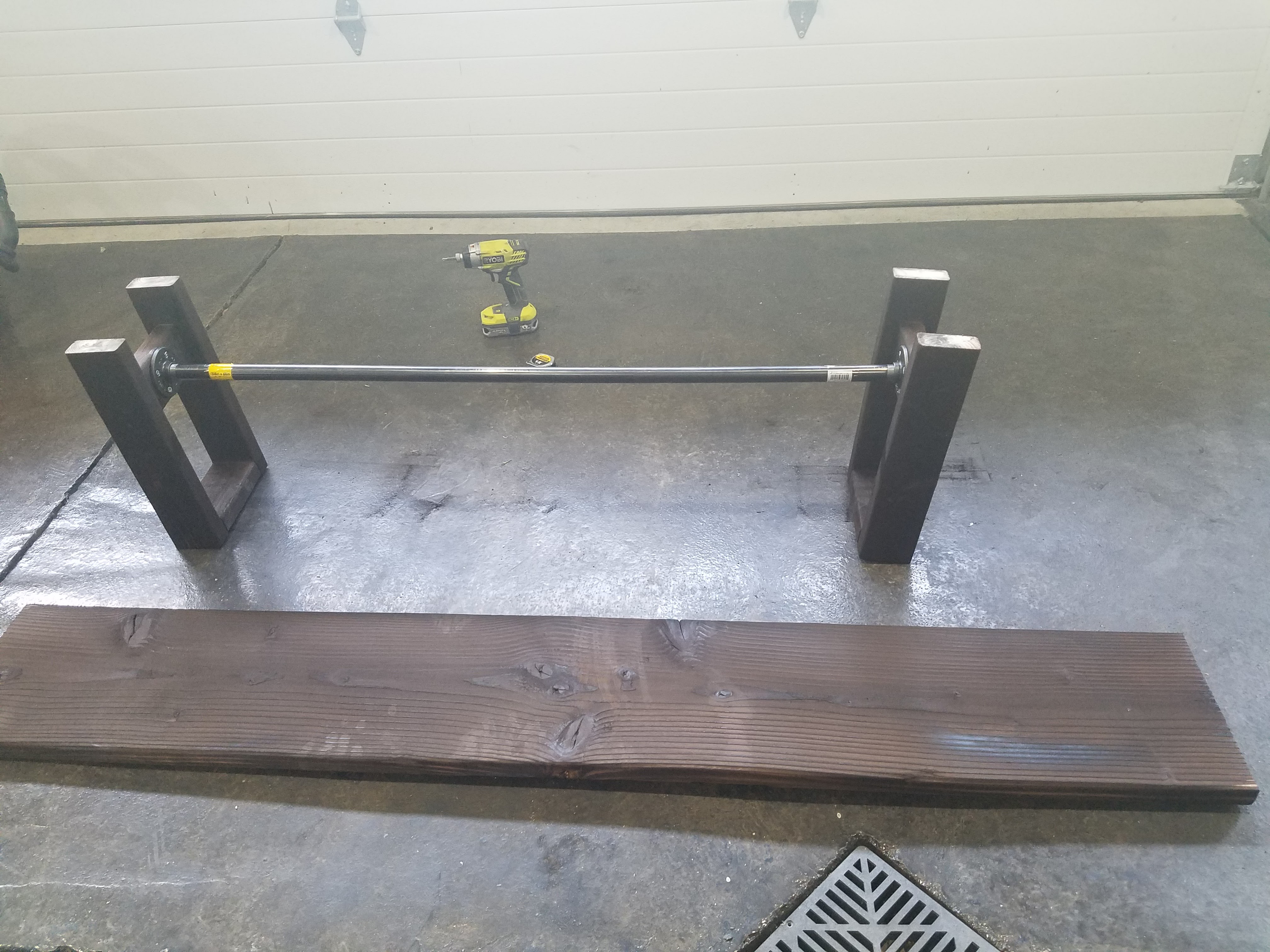 The legs of the bench would simply be made out of 2x4s, with a suspension bar of sorts (i.e. black pipe) connecting the two sets of legs together for added support.