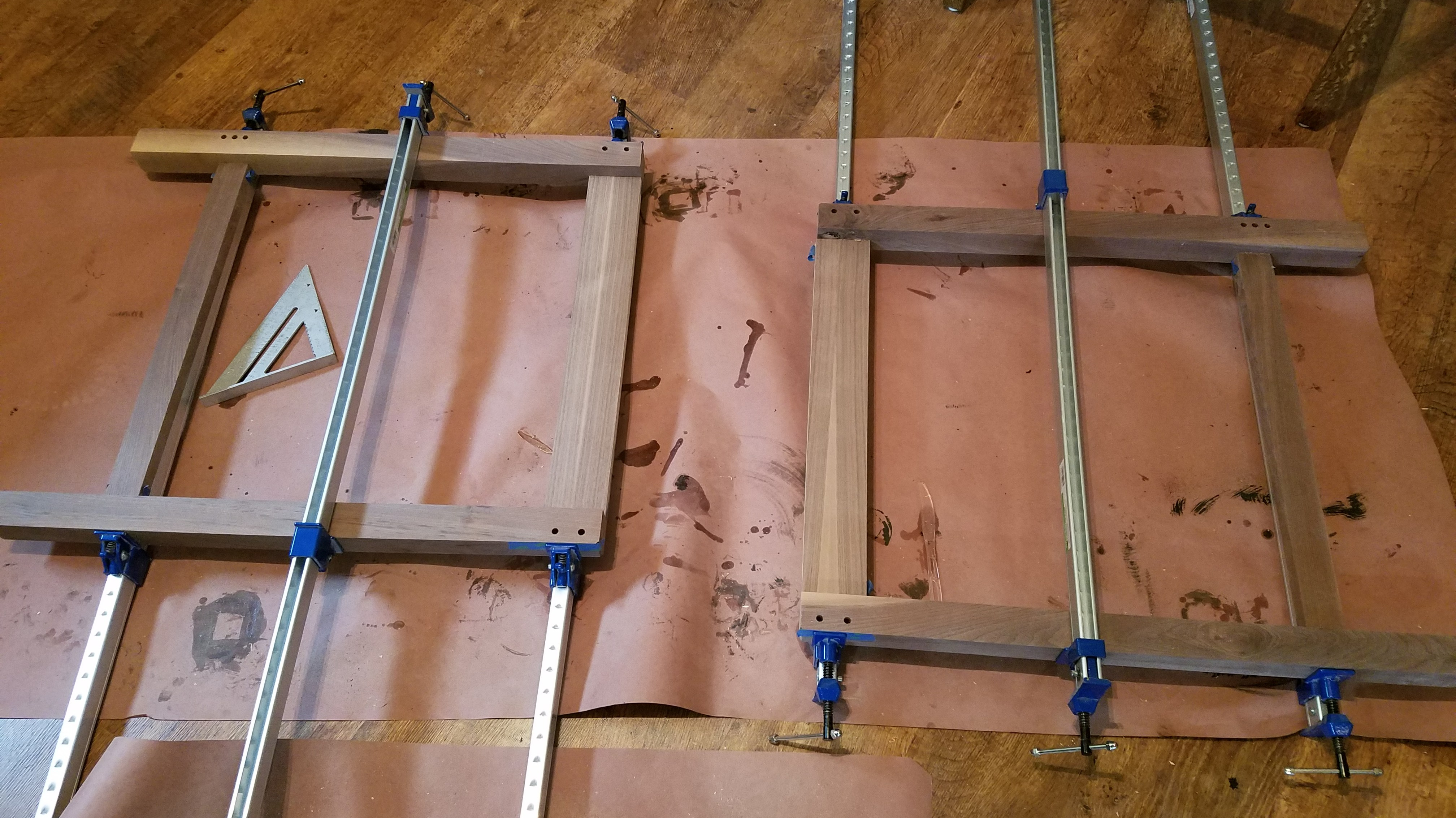 The legs were then built into large squares using wood glue, dowels, and lots of clamps.