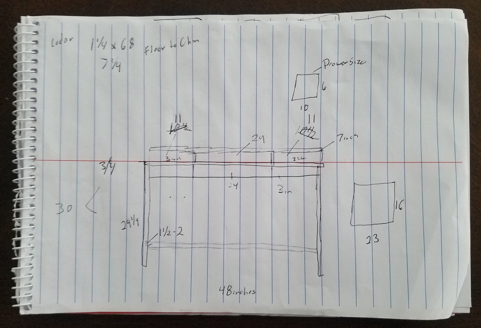 Dan watches a lot of YouTube channels and follows a bunch of craftsmen on Instagram, which is usually his starting point for finding a few designs for inspiration, meshing them together, and adding his own twist to make them his own.  The design of this piece followed a similar path, and ended with a hand sketch of what the desk would turn out to be.