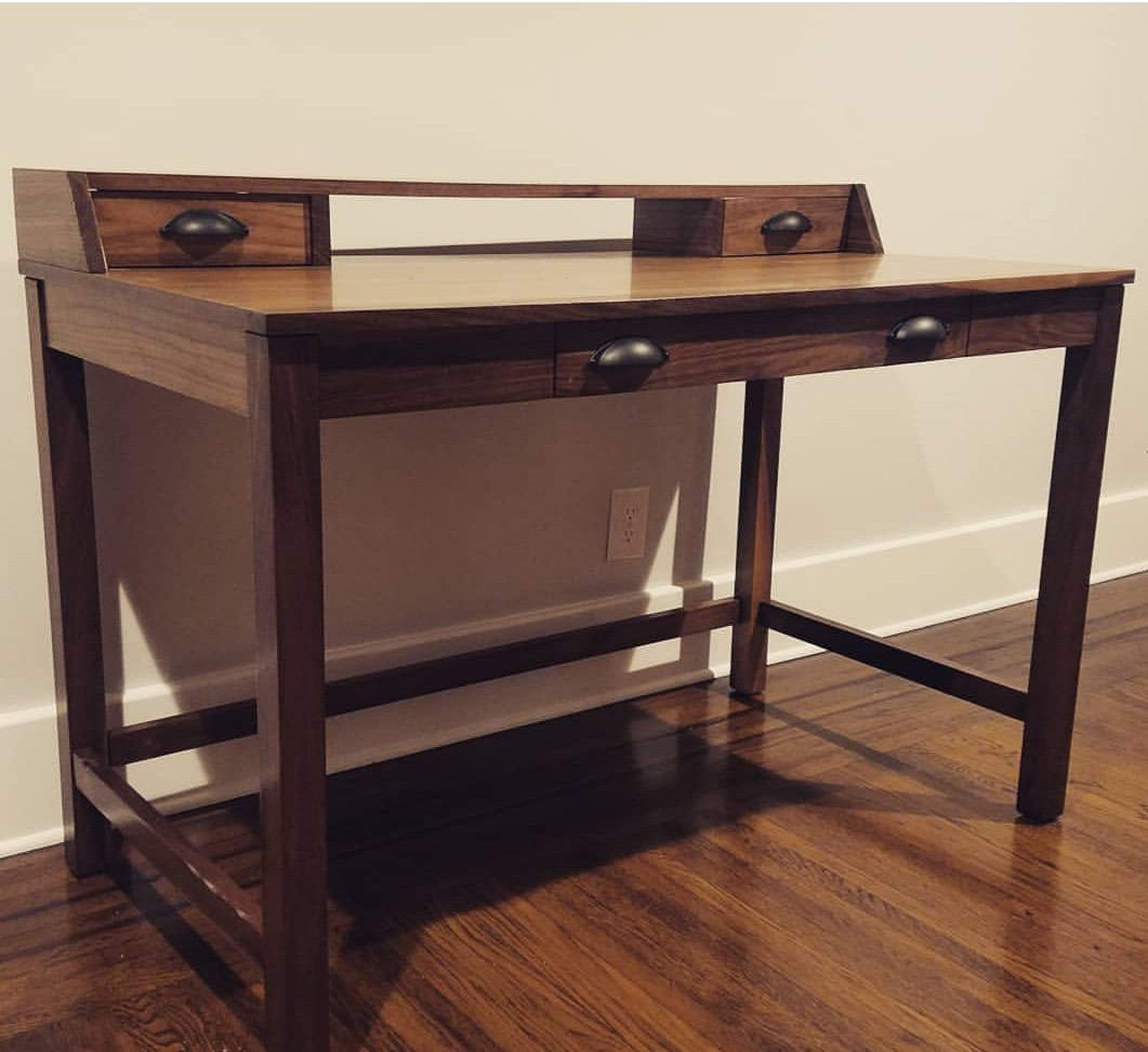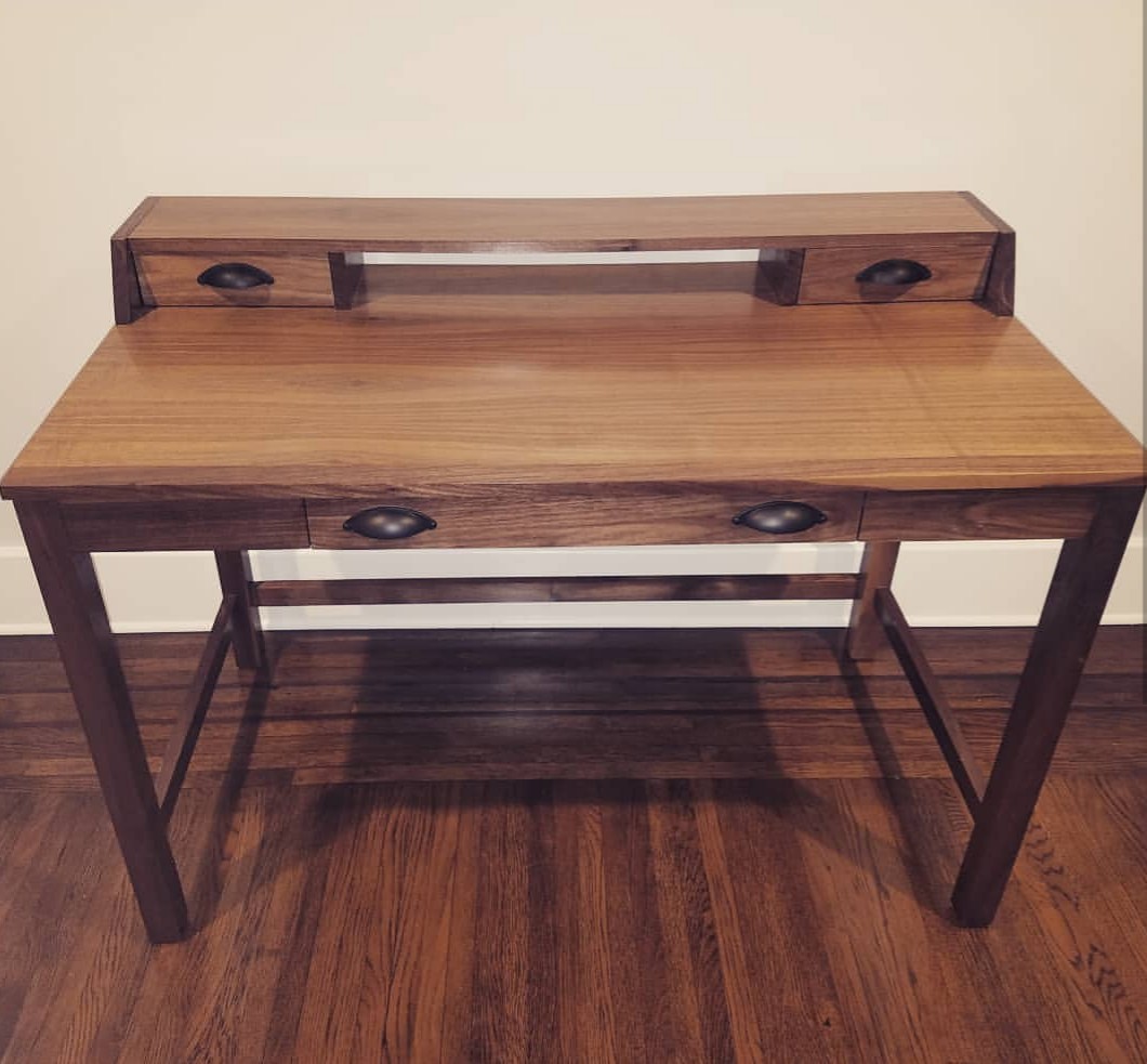 Because the lines, wood grain, and color already stand out in this walnut desk, all that was needed was a few layers of poly to bring this desk to life.