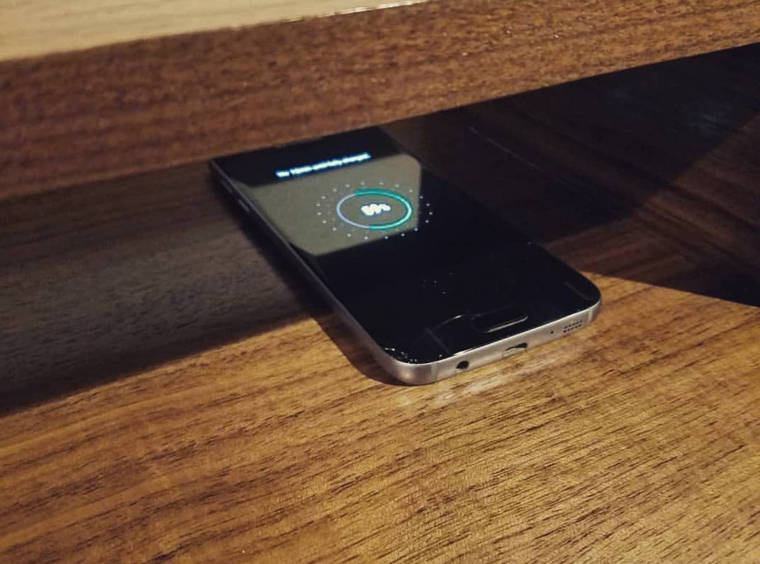 But before this desk was complete, Dan couldn’t resist adding more modern to the design by incorporating an unseen, wireless charger. As much as I pick on him for his modern tastes, I have to admit this feature is pretty cool (and comes in handy too).